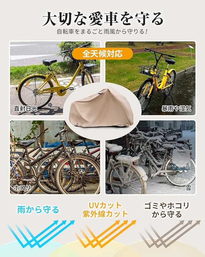 自転車カバー 厚手 210d 防水 大きめ 後ろかご対応 破れにくい サイクルカバー 電動自転車 雨避け バイクカバー 盗難防止 防風バックル 風で飛ばない 丈夫 取付簡単 収納袋付 撥水加工 ロックホール 防犯 防風 防塵 耐熱 破れにくい 傷防止