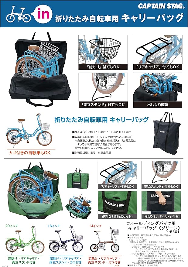 キャプテンスタッグ(CAPTAIN STAG) 輪行バッグ 輪行袋 キャリーバッグ 折りたたみ自転車用 Y-5500/Y-5501/Y-7355/Y-7356