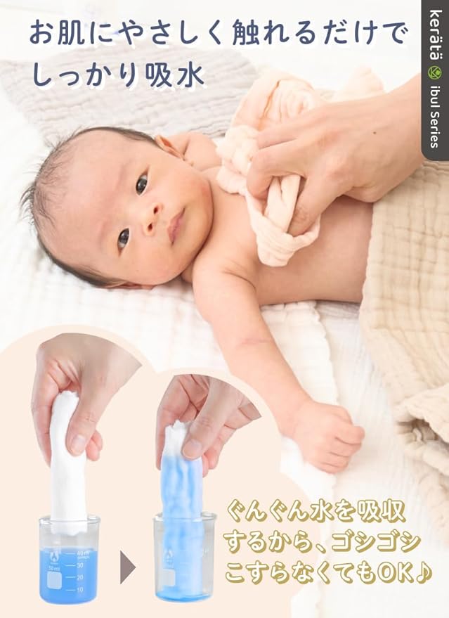 【沐浴期が終わってもずっと使える!】ふわふわで柔らかいので、赤ちゃんのお肌にも安心。お口ふきハンカチとしても大活躍です。沐浴期が終わってもずっとお使いいただけます。