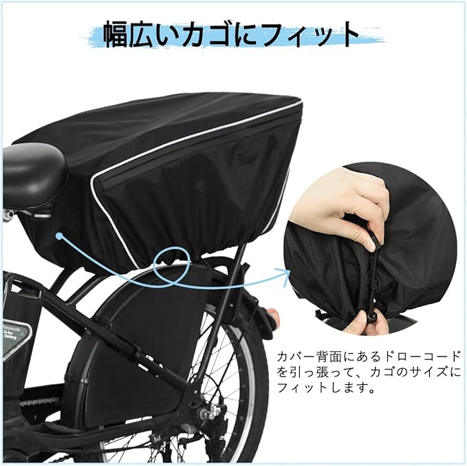 取り付け簡単:カゴにカゴカバーをかぶせて、ストラップを固定するだけで取り付け完了!