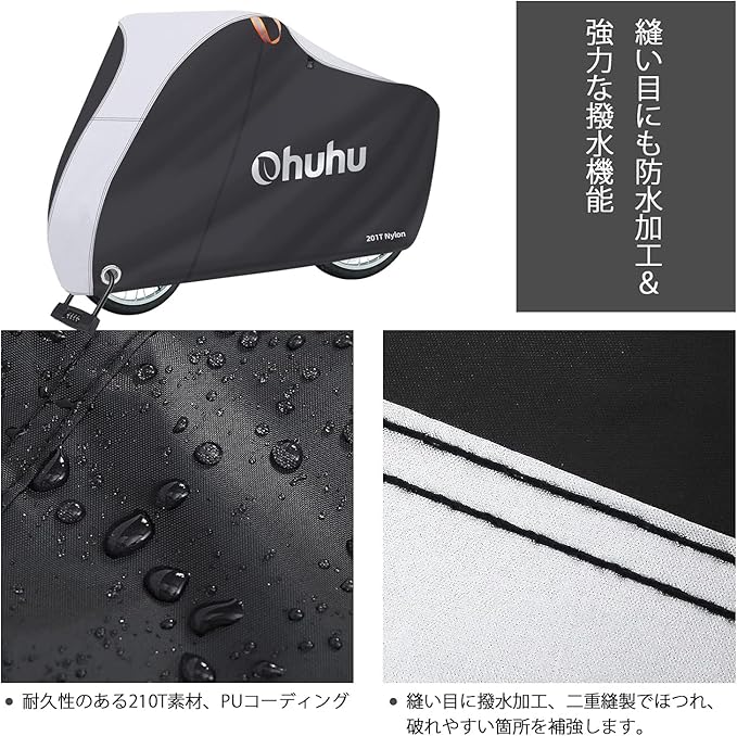 Ohuhu 自転車カバー 防水 厚手 破れにくい 210D 雨避け UV加工 防風 盗難防止 29インチまで対応 210T 190T 通常サイズ 収納便利