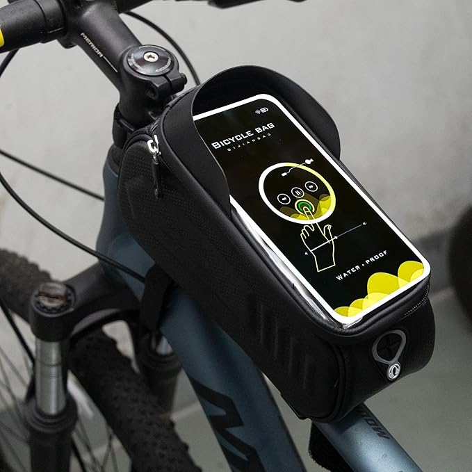 自転車バッグ 防水 トップチューブ フレームバッグ TPU高感度タッチスクリーン対応 スマホホルダー ロードバイク/MTB対応 24 10 15cm 170g 耐摩耗ハードシェル 取り付け簡単 小物収納