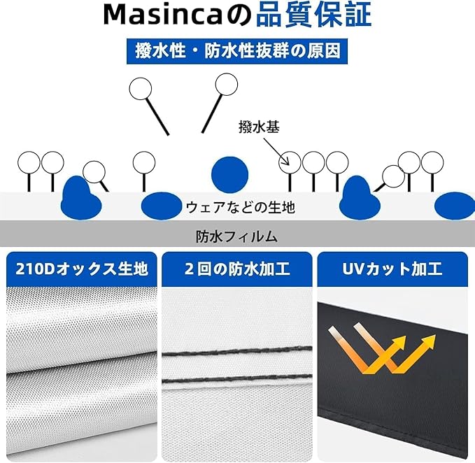 【高撥水・UV遮断】 軽量ながら高密度ポリエステル素材に二層防水コーティングを採用。UV加工で直射日光による劣化を防ぎ、撥水力は標準品の2倍以上!雨・ほこり・紫外線から大切な自転車カバーを守ります。