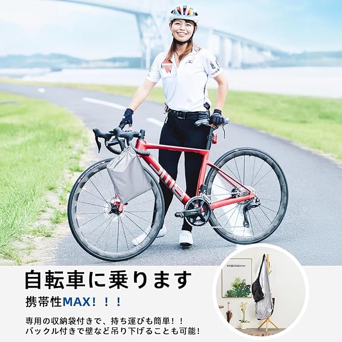 【大型サイズ対応・コンパクト収納】 立体裁断と調整可能な絞りゴムを採用した自転車カバーは、大人用自転車から子供用自転車まで幅広く対応!専用収納袋付きで、大きなサイズでも折り畳めば手のひらサイズに。未使用時や持ち運び時は専用ケースでスリムに収納可能です。