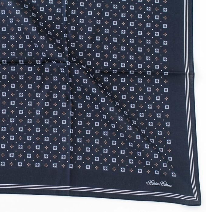 [Brooks Brothers] ブルックスブラザーズ イージーケア 大判プリントハンカチ 小紋柄 0002 (ネイビー) [ノーアイロン/形態安定] 紳士 メンズ ハンカチーフ 約54cm 125024-0002-03