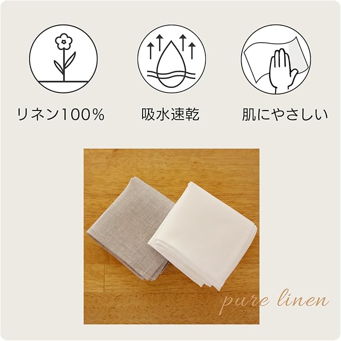 Cadeau屋|ハンカチ プレーン リネン 45 45㎝ オートミール ナチュラル 麻 素早くしっかり吸水 速乾 手拭き