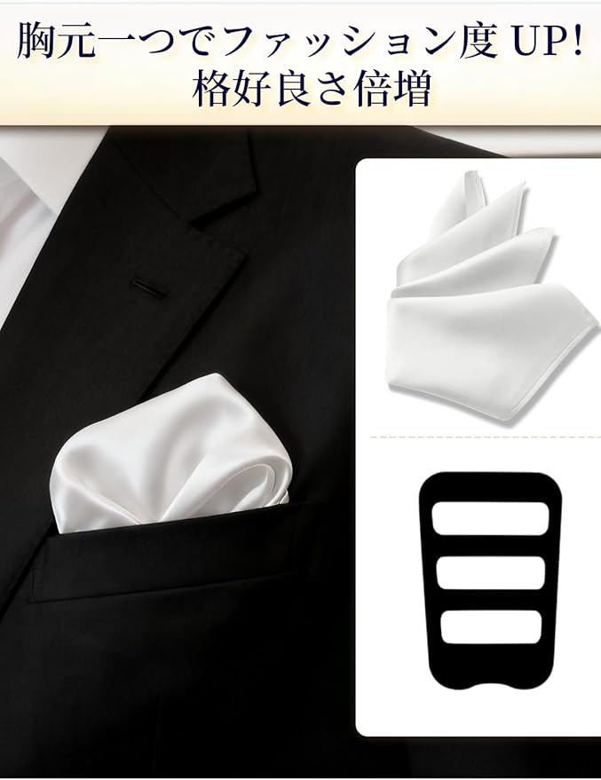 [Beirou] メンズ ポケットチーフ 100%シルク 16匁 高級光沢 【ホルダーと折り方ガイド 付き】 型崩れ防止 結婚式 パーティー ビジネス 35 35cm 無地 23カラー選べ | peaceFull store