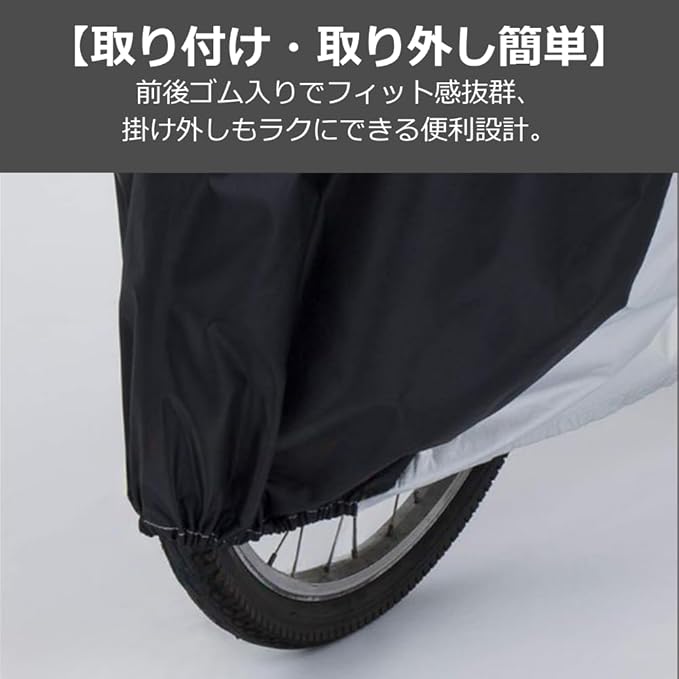 【商品仕様】大判サイズで27インチ自転車や原付に対応し、丈夫なポリエステル素材を採用。