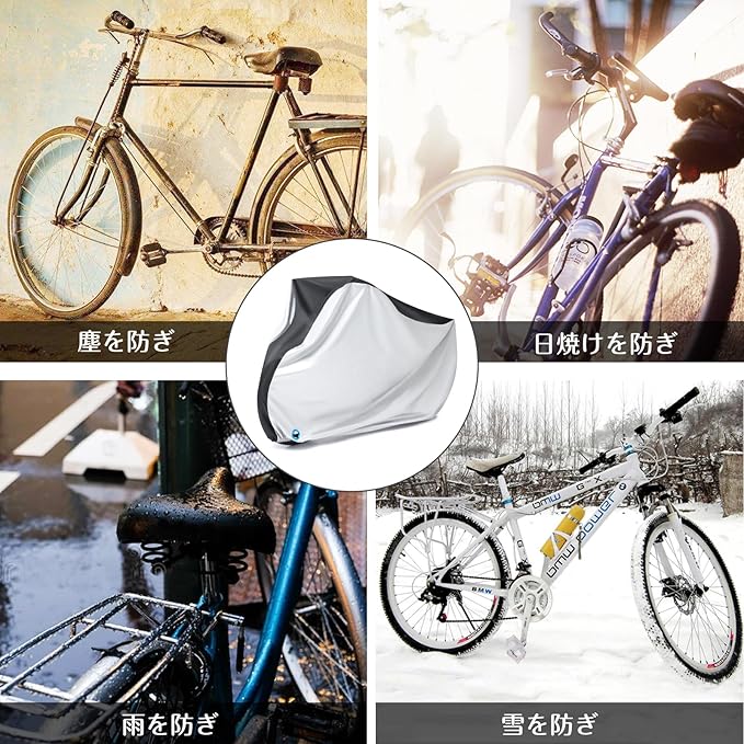 【高い撥水効果・99.9%UVカット】撥水加工の効果は通常の自転車カバー2倍です。カバーの表面は、高分子断熱材料を採用し、紫外線に対するバリアを形成し、紫外線を99.9%以上カットします。日焼けにさらされることによる自転車本体の劣化や損傷からも大事な車を守ります。それに、風の侵入を防ぎバタつきを抑え、雨、雪、ほこり、ゴミ、摩擦などから最小限に抑えることができます。