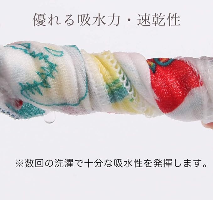MOMSMENUのガーゼハンカチは、赤ちゃんのために特別に設計された4重構造で、優れた吸水性と速乾性を誇ります。