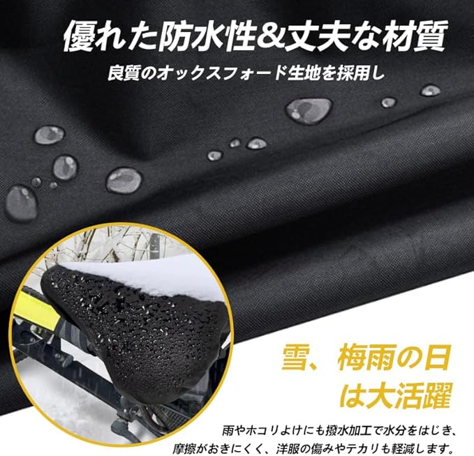 【材質】420Dオックスフォード生地を採用し、防水とUV カットができる高機能性です。環境によるサドルの劣化、汚れ、濡れなどの心配が解消できます。