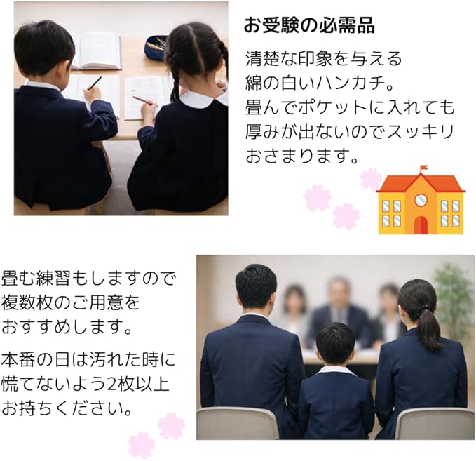 お絵描ハンカチ 白無地ハンカチ10枚組 20 20cm キャンブリック 綿100% 学童サイズ お受験 入園入学準備 染色 刺繍 日本製