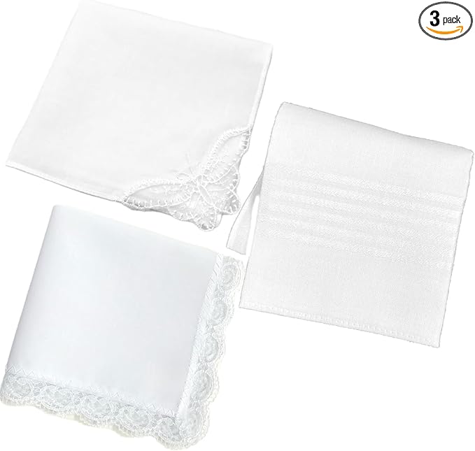 [Tsumulie] ブライダルハンカチ 白 結婚式 【3枚 セット】 薄手 ハンカチ レディース 2枚 メンズ 1枚