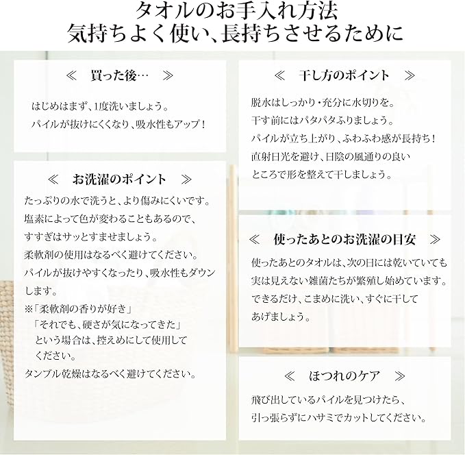 ◆天然素材のコットンを100%使用しており、心地よい肌触り・吸水性に優れています。