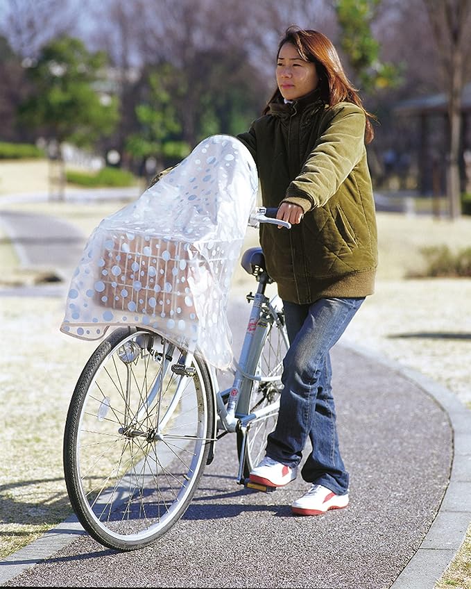 自転車 前 カゴ 防水フードカバー 簡単 取り付け 取り外し ワンタッチ 構造 折りたたみ 透明 水玉 ひったくり 盗難防止 にも