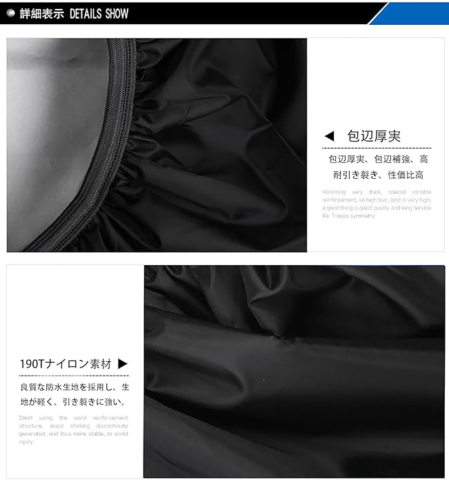 【耐久性に優れている】当社のレインカバーは高密度の190 Tナイロンの防水表面とPUコーティングを採用し、防水性と耐摩耗性が強く、摩擦などの傷付きを防止しています。