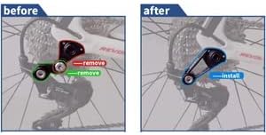 ※本製品を装着後、チェーンの長さが足らなくなる場合があります。別途チェーンの交換や変速の調整をする必要があります。