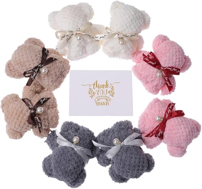 【個包装で渡しやすいタオルギフト】ふわふわなクマの形をしたハンカチはプチギフトやプレゼントに最適です。 多くの方々に配れるように個包装にしました。また、個数もバリエーションを多く取り揃えております。