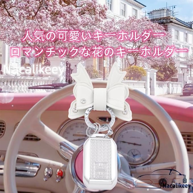 【Nacalikeey】キーケース適合スズキクロスビー 新型 ジムニー JB64W 新型 ジムニーシエラ B74W・ 新型ハスラー 新型ソリオ SOLIO/ソリオ バンディット 可愛の蝶々デザインキーケースきらめき キーカバー華やかなスタイルわいいキーケース キーホルダー 女性向け ギフト(2ボタン,ホワイト)