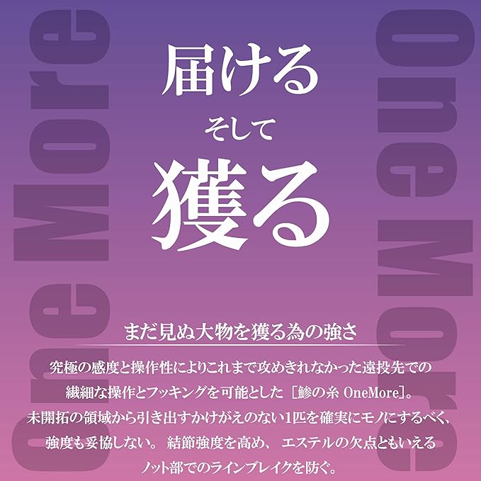 コンセプト:【鯵の糸エステル ワンモア】……遠く・深いポイントでも仕掛けを探り、アタリを明確に感じる! 低伸度設計による「極まる感度」「最高峰の操作性」を持ち合わせたアジング用エステルライン!!