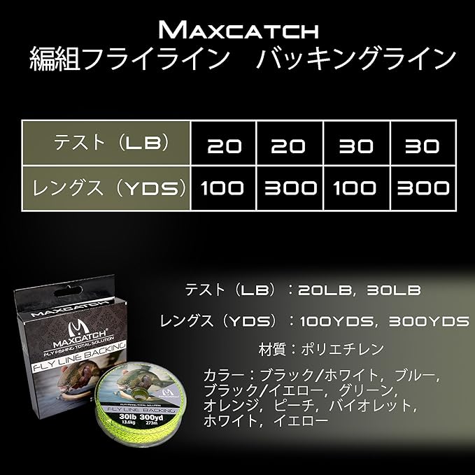 M MAXIMUMCATCH Maxcatchバッキングライン フライフィッシング用100yard(約90m) 20/30lb セット(ホワイト、イエロー、オレンジ、ブラック&ホワイト、ブラック&イエロー、ピーチ、ブルー、グリーン、バイオレット)