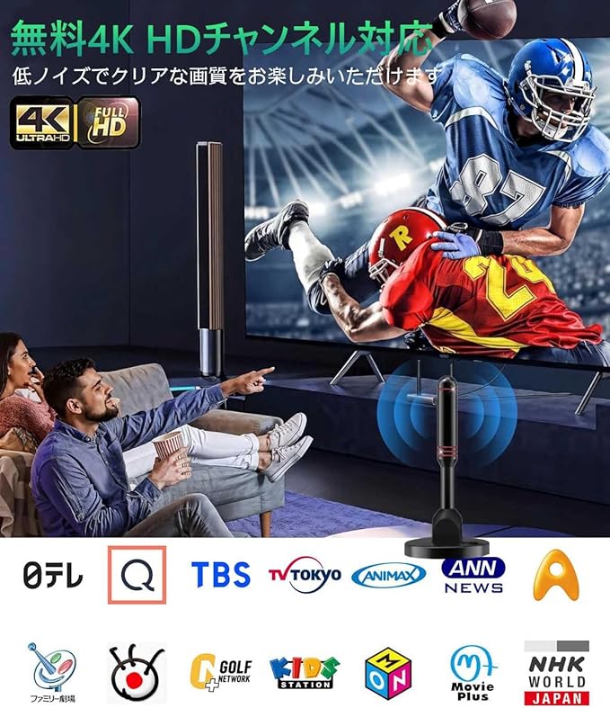 これまでの常識を覆すテレビアンテナの登場!!!【工事の必要不要・無料視聴】工事の必要がなく、テレビと接続するだけで電波の受信が可能になる室内アンテナが登場します!以前は、より多くのテレビ番組を視聴するために、高価なケーブルまたは衛星通信料を支払わなければなりませんでしたが、このアンテナを購入したら、高価な視聴料を再度支払う必要はありません!毎日友達と家族と一緒にニューズ放送や天気予報、ドラマ、野球試合、アニメなど、お好みのチャンネル放送を無料で視聴することができます。