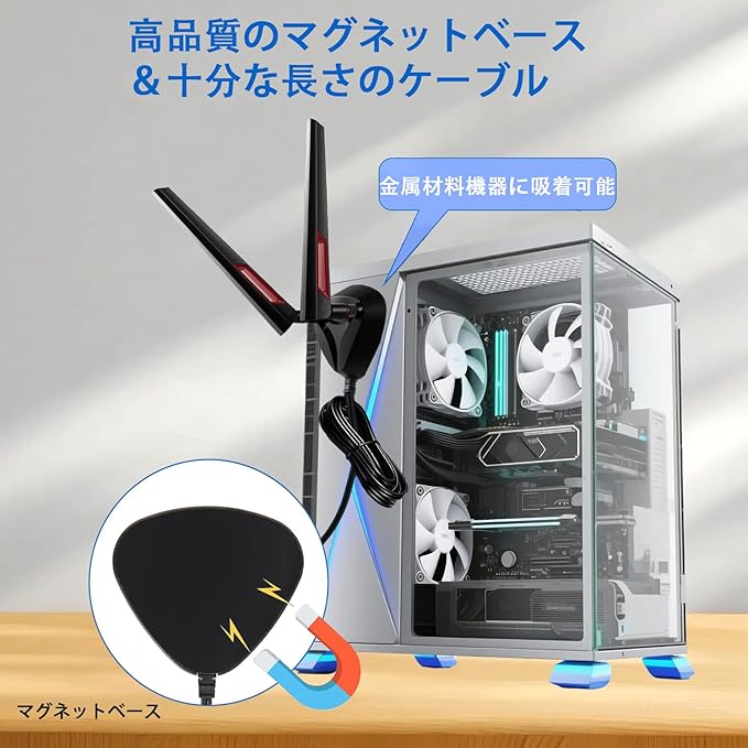 WiFi 6E アンテナ トライバンド WiFi 6GHz 5GHz 2.4GHz アンテナ RP-SMA WLAN マグネットベース 2m/6.6フィート延長ケーブル付き PC Bluetooth マザーボード WiFi 6 ルーター カメラ PC デスクトップ
