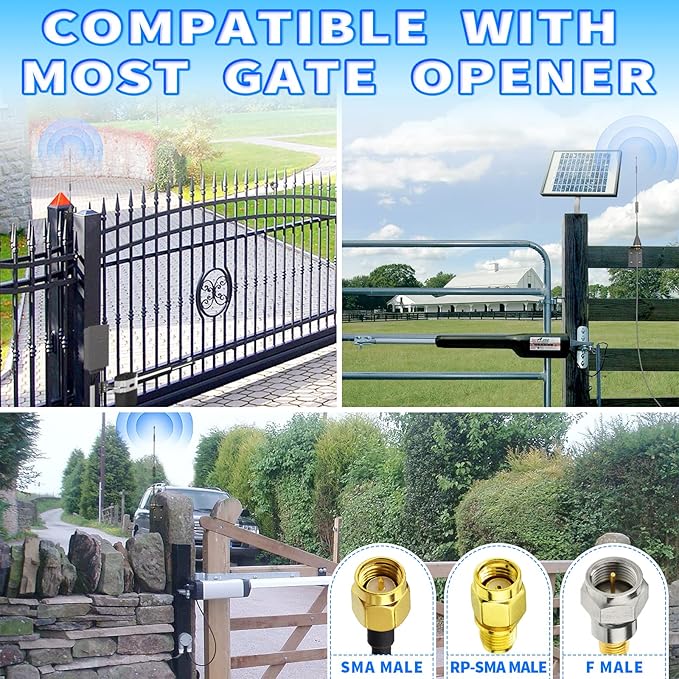対応機種:LiftMaster LA400 レーン自動ドアオープナー / Ghost Controls TSS1XP DTP1XP DTP1 DEP2 TDS2 電動ドアオープナー / マルチコードドアオープナー。【接続方法:F型アダプタコネクタ、プラグアンドプレイ】.対応機種:ALEKO / CO-Z / TOPENSシリーズ全機種、およびその他の433MHzワイヤレスドアオープナー!【接続方法:アンテナの設置にははんだ付けが必要です。既存の細線をはんだ付け解除し、同軸ケーブルをはんだ付けしてください。】
