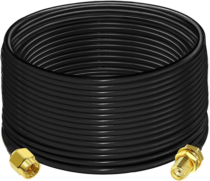 ケーブルの種類と詳細: SMA オス - SMA メス同軸ケーブル; アダプタの種類: SMA; ケーブルの種類: RG58; 導体材質: 純銅; ケーブル長: 49.2 フィート (15 メートル); インピーダンス: 50 オーム、低損失