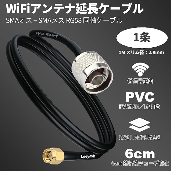 【パッケージ内容】SMAオス‐Nオス RG58 デジタルRF同軸ケーブル 100cm 1本。簡単インストール:leeyovk の同軸ケーブルは扱いやすい設計で、工具なしで簡単に接続できます。プラグするだけで安定した信号伝送が可能になり、複雑な作業は不要。初めての方でも安心してお使いいただけます。