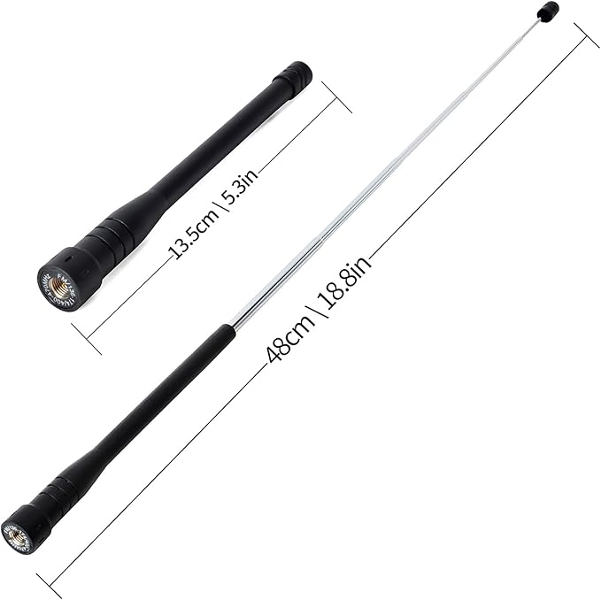 【伸縮可能】最小135mm、最大480mmの間でアンテナの長さを調節可能で、必要に応じて伸ばして受信状態が安定する位置に合わせる事ができます