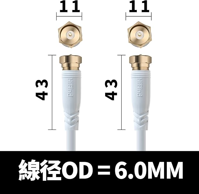 【製品仕様】●ケーブル規格:S-4C-FB同軸 ●カラー:白/ホワイト●ケーブル長:30M ●ケーブル直径OD(太さ):6.0mm ●コネクタ形状:両側ネジ式(24K金メッキ仕様)●インピーダンス:75Ω