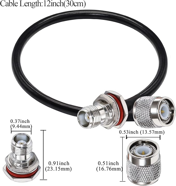 ケーブルタイプと詳細: TNC 同軸ケーブル; ケーブルタイプ: RG58; 導体材質: 純銅; ケーブル長さ: 12 インチ (30 cm); インピーダンス: 50 オーム、低損失