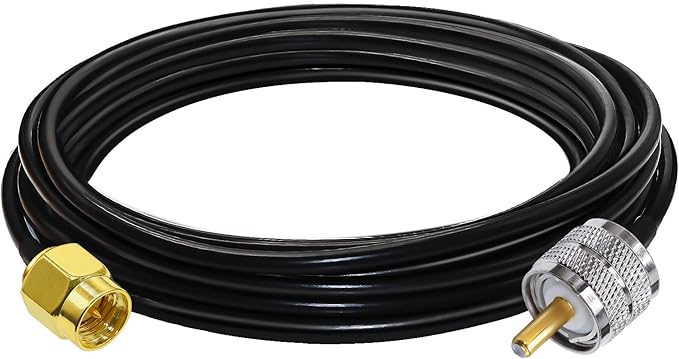 ケーブルの種類と詳細: SMA オス - UHF 同軸ケーブル; ケーブルの種類: RG58; 導体材質: 純銅; ケーブルの長さ: 16.4 フィート (5 メートル); インピーダンス: 50 オーム、低損失