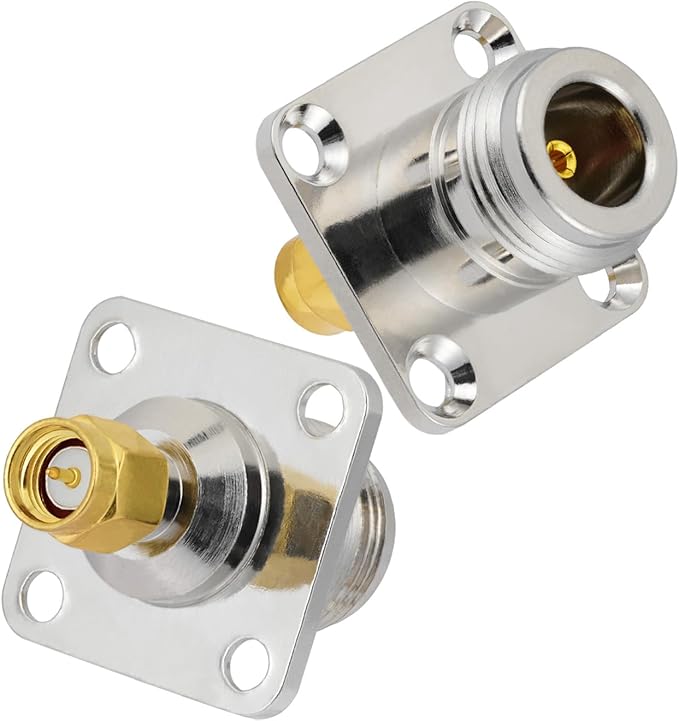 2個入りN型メス-SMA型オス 4 穴フランジパネル取り付け型コネクタ50オーム N型-SMA 4 穴フランジシャーシ取り付け型半田接続アダプター 無線アンテナ同軸ケーブル用
