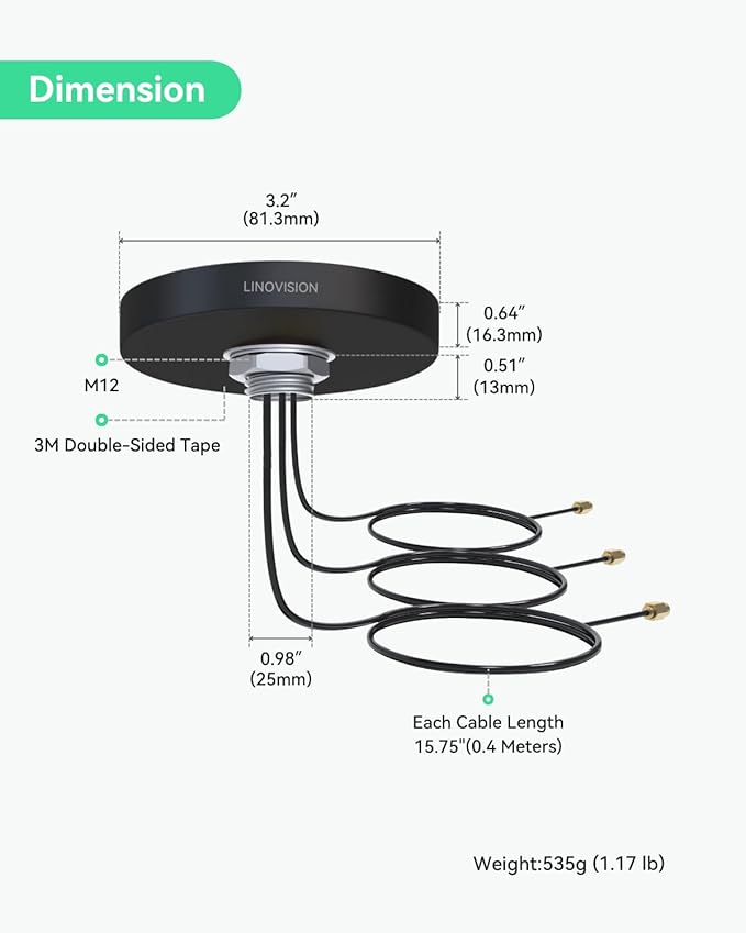 LINOVISION 4G LTE MIMO & WiFi 3-in-1 コンボアンテナ、2 x 4G LTE+ 1 x デュアルバンド Wi-Fi、屋外/屋根 SMAアンテナ、IOT-R32 / Inhand IR302 / Teltonika RUT241 / RUT240などに対応可能