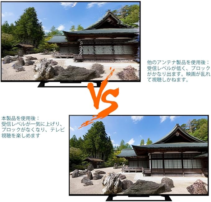電波対応・受信範囲:VHF 87.5-230MHzからUHF 470-700MHzまで、幅広い周波数に対応しています。発信所から55マイル(88km)まで範囲内、安定した受信をさせます。