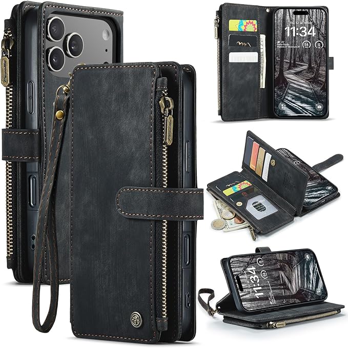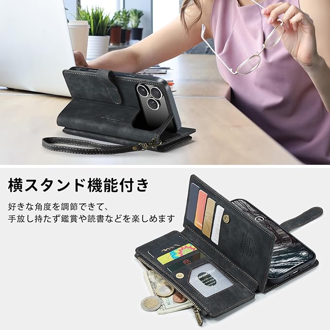 iPhone 17 Pro Max 対応 ケース 手帳型 カバー PUレザー 多財布デザイン スタンド機能付き 磁気バックル付き カード収納 コイン収納 アイフォン 17 pro max ケース 手帳型 大容量財布型 収納ポケット 衝撃防止 擦り傷防止 スクリーン/カメラ保護 実用性高 iPhone 17 pro max 財布型ケース (ブラック)