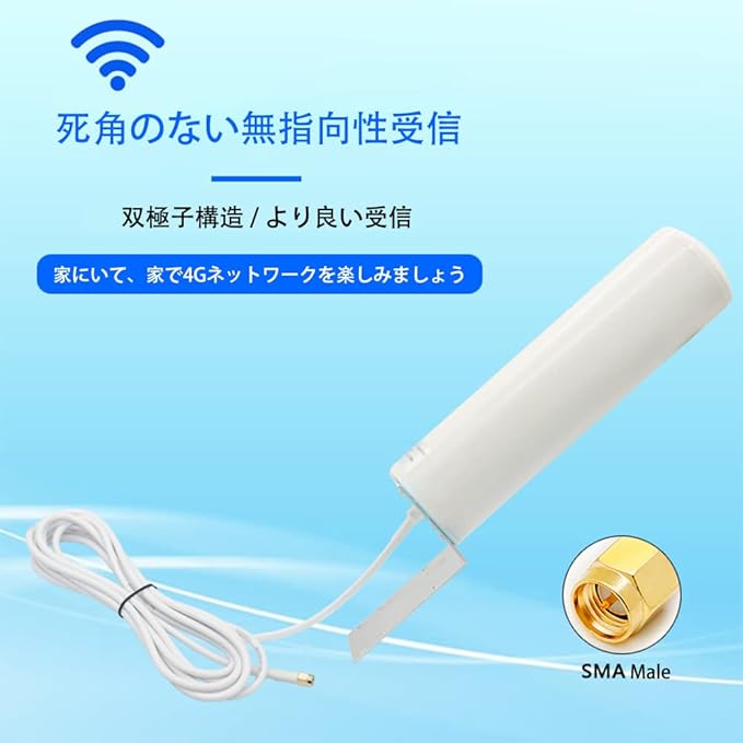 4g wifi アンテナ 698-4000MHz 12DBi オムニ 屋外 防水 バレル アンテナ SMA オス付き GSM W-CDMA 2g 3g 携帯電話信号増幅器 モバイル信号リピータ用