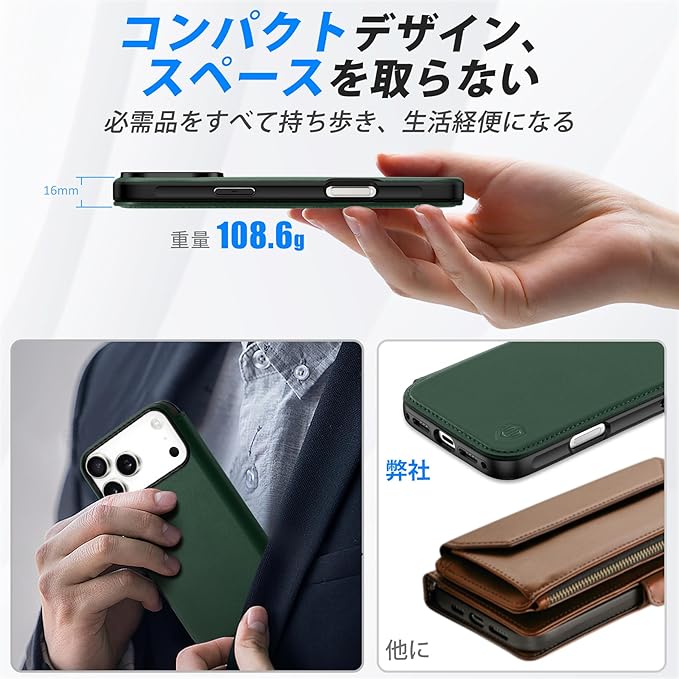 【RFIDブロッキング技術採用】本iPhone 17ProMax対応ケースのカードスロット&ポケットの裏地には、RFIDブロッキングライニングを採用しています。先進的なRFIDブロッキング技術により、信号をブロックし、ICカードの情報や個人情報などを安全に守ります。信号がブロックされるため、カードをケースに入れたまま反応しない場合は、カードを取り出してお使いください。