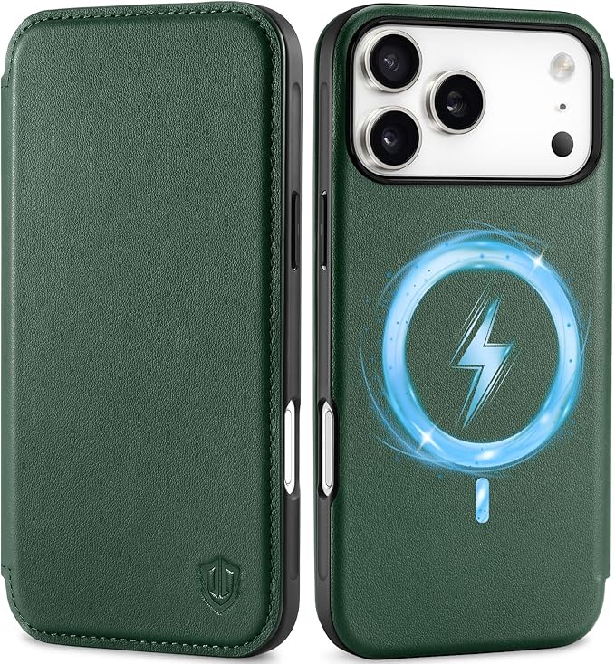 SHIELDON iPhone 17ProMax 対応 手帳型ケース 本革レザー 6.9インチ 5G 薄型 ワイヤレス充電 磁気充電可 [RFIDブロッキング] カード収納 マグネット内蔵 ストラップ穴付き 衝撃吸収 アイホン17プロマックス 対応 スマホケース 2025年発売 ミッドナイトグリーン
