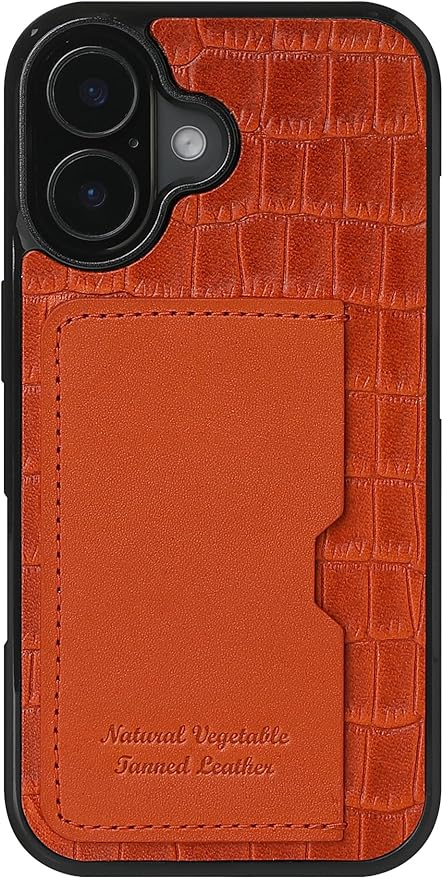 栃木レザー 本革 スマホケース iPhone 17 Pro Max 互換性 対応ケース カード入れ クロコダイル クロコ型押し グリップ 落下防止 (オレンジ)