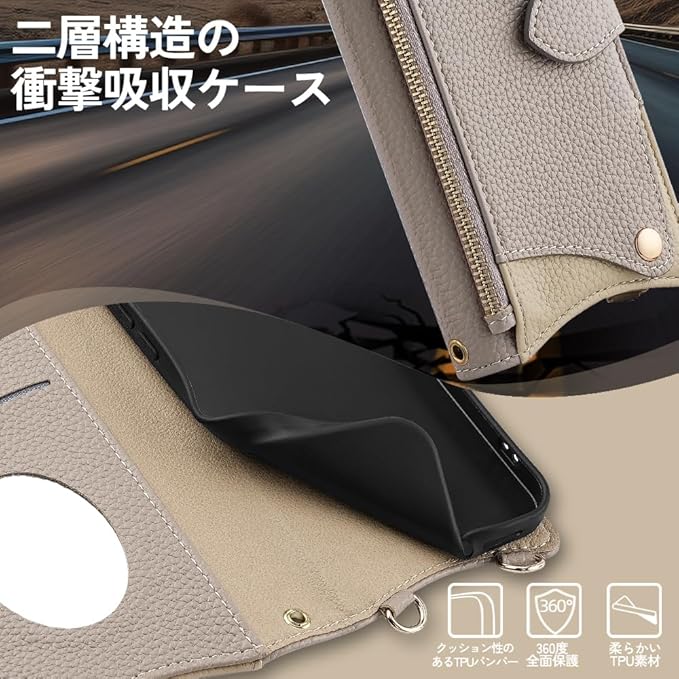 【360 全方位保護】 TPU内殻と高品質レザー外装の二重構造を採用。補強ステッチで耐久性を向上させ、衝撃吸収性に優れたTPUが落下衝撃を効果的に緩和し、端末を全面的に保護。アイフォン対応:iPhone 17 Pro Max