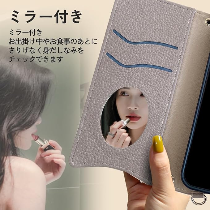 【多機能統合】 2枚のカードスロット+紙幣収納ポケット+プッシュ式カードホルダー+ファスナー付きコインケース+隠しミラーを装備。折りたたみ式キックスタンドは角度調節が可能で、読書・動画視聴・ビデオ通話など多様なニーズに対応。
