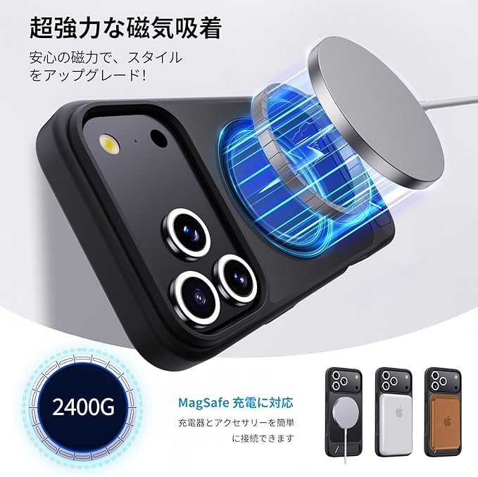 【MagSafe対応】MagSafe充電に対応しており、対応 iPhone17プロマックス ケースを外さずにワイヤレス充電が可能。充電の手間を省け、便利で効率的に使えます。