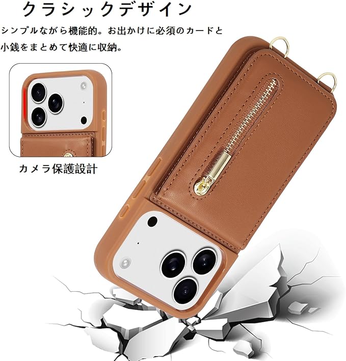 Jcxtrombulous対応 iPhone 17 Pro Max ケース 背面カード マグネットICカード収納 調節可能なストラップ付き 耐衝撃な 携帯ケース アイホン17 プロマックス スマホ PUレザー スタンド RFIDブロッキング技術ケース 6.9inchブラウン