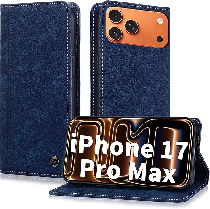 対応 iphone 17 pro max ケース 手帳型 カバー 財布付き カード収納 (2枚まで) スタンド機能 マグネット閉じ 耐衝撃 PUレザー ブルー おしゃれ スピーカーホール対応 -iphone17プロマックス /いphone17promax/iphone17プロマックス / アイフォン17プロマックスブルー