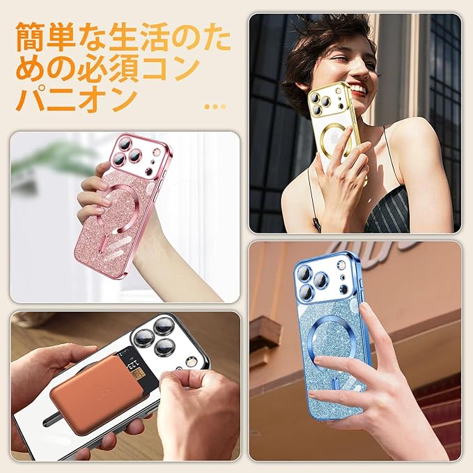 【対応機種】iPhone17ProMax専用に設計されています。ケース+ガラスフィルム(2枚)+グリッターカード+ストラップ。必ずご購入前に携帯電話の機種をご確認ください。