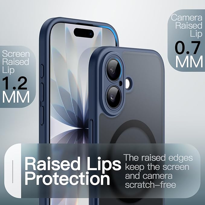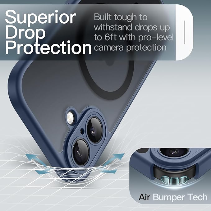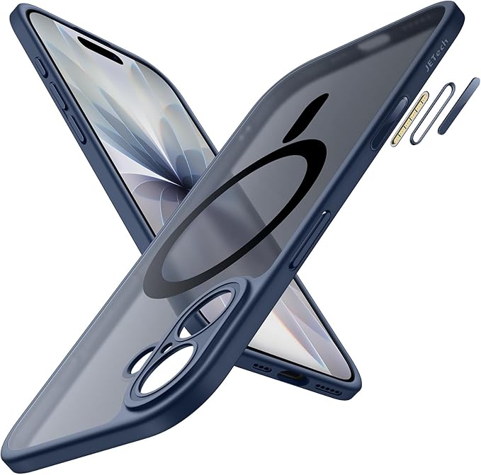 JETech iPhone 17 6.3インチ用 マグネットケース MagSafeに対応 耐衝撃薄型 スマホカバー 内蔵カメラコントロールボタン マット半透明バック (ストームブルー)