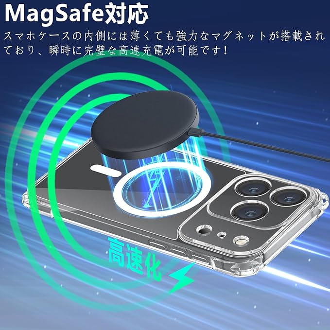 【MagSafe対応】スマホケースの内側には薄くても強力なマグネットが搭載されており、瞬時に完璧な高速充電が可能です!MagSafe互換マグネットで使い道もいろいろで、MagSafe及び各種対応アクセサリーが楽しめます。充電がさらに簡単、便利になりました。